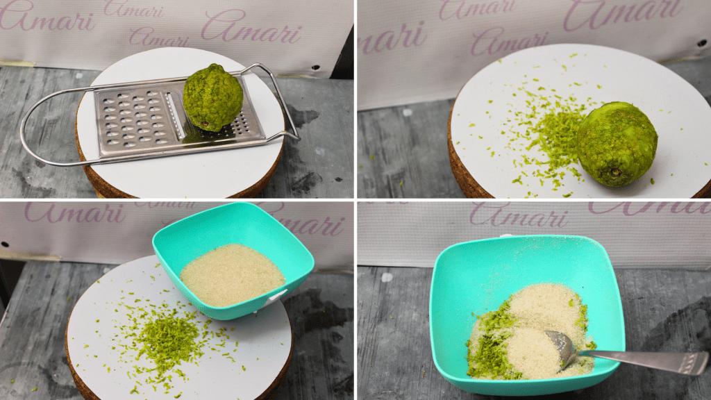 Grate the rind of the Lemon. Measure the sugar into a small separate bowl and add in the rind, mix and set it aside. Squeeze the juice from the lemon and set aside. Measure 30 ml of the milk into a liter jug and set aside.
