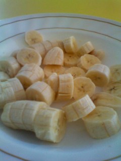 3.) In a blender; put in the Ripe bananas, fresh-squeezed orange juice, honey and water.