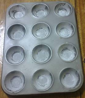 | Greased & floured muffin pan |