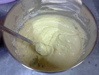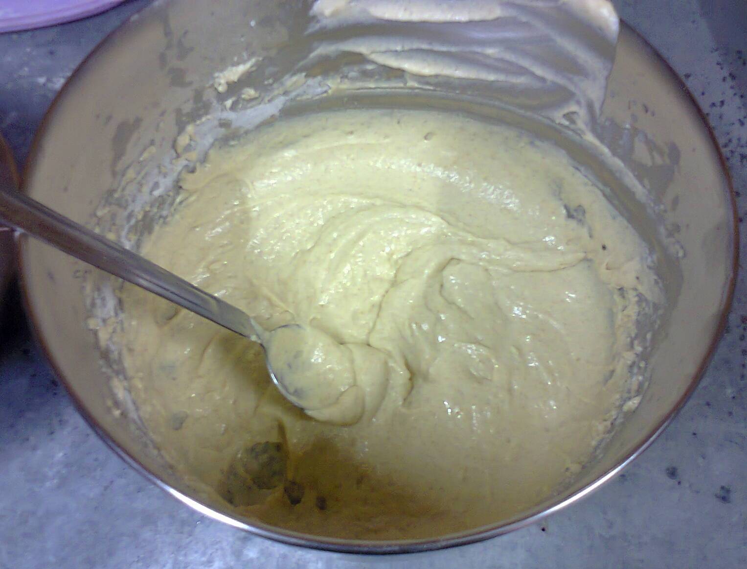 Fold in the flour mixture and milk alternately, add the milk gradually until you have a drop consistency batter (if you drop your batter from a spatula – it should take 2 seconds to drop). Fold until well incorporated. Do not over-mix.