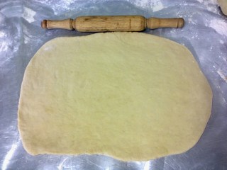 Shape your dough into a rectangle using a rolling pin - For the filling: put the sugar and cinnamon in small bowl and mix thoroughly.