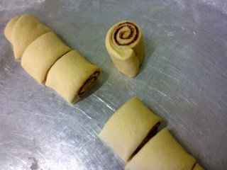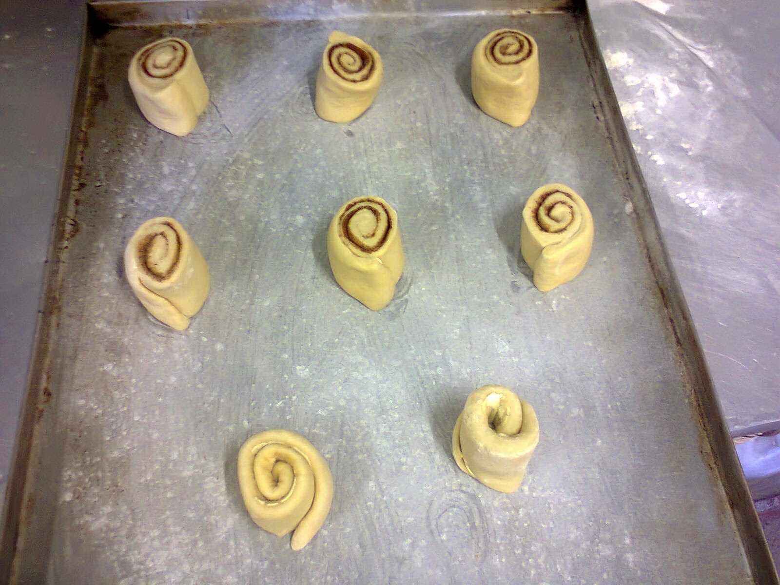Cut the roulade into 8 pieces - Place the individual rolls on a grease and floured baking sheet and allow space in between the rolls for rising.