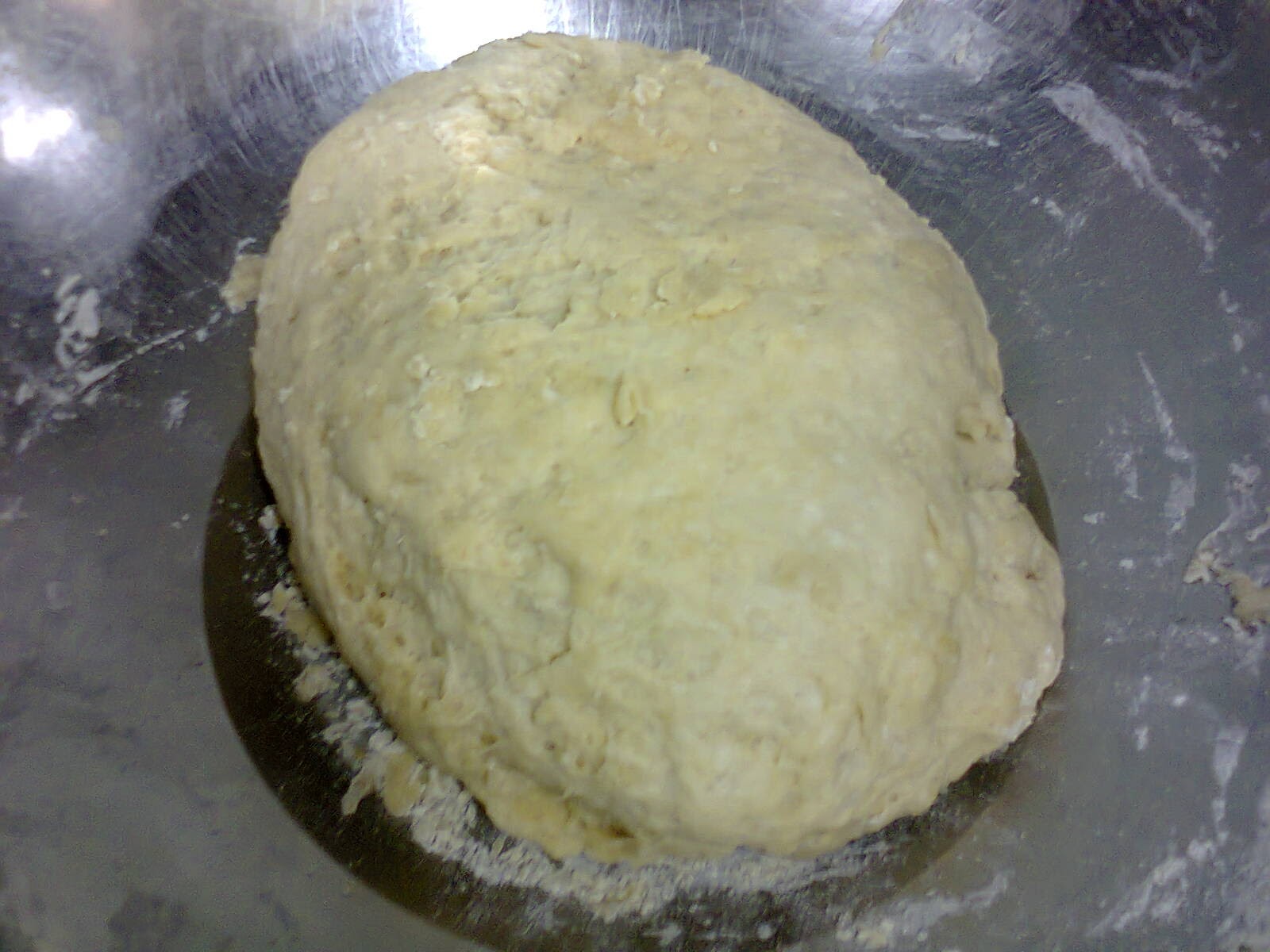 Proof dough until doubled in size - Grease and flour a baking sheet pan and set aside. Then flour your working surface and put your dough on the prepared surface.