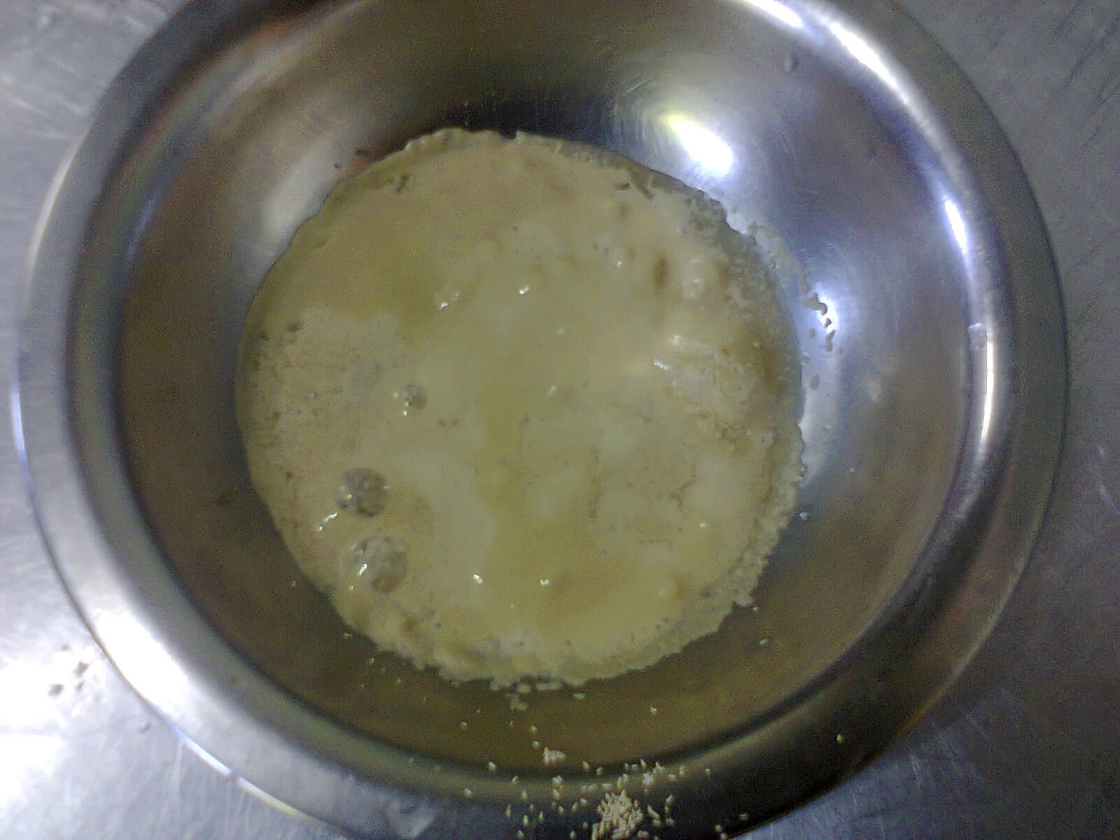 - In a medium bowl, measure you yeast and add a pinch of sugar to help activate the yeast. Then pour in small amount of lukewarm water (appx. 1 T) and let stand for at least 3 minutes.