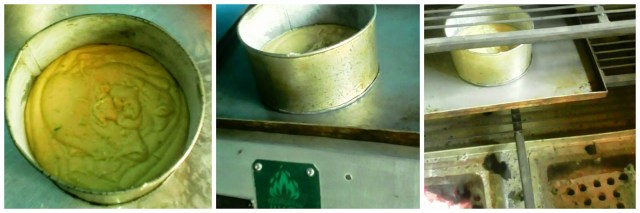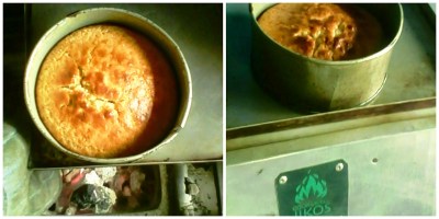 9. The cake should bake for about an hour; in a Cookswell Charcoal Oven at the right temperature it took 66 minutes to bake. When a clean knife inserted, it should come out clean. Remove your cake from the oven and set aside to cool for about half an hour. Remove from the pan and set on a cooling rack or tray to cool completely before frosting.