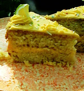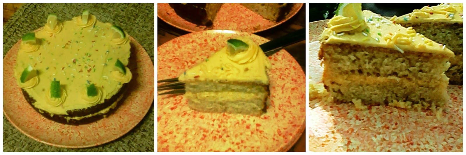 10. When you cake is completely cool; level the top until it’s flat, then torte it and frost the middle with the butter cream frosting (recipe below). Frost just the top of the cake and make eight star tip borders that you can garnish with small slices of lemon.. You can add some sprinkles for a pop of color.