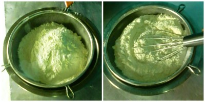 3. In a medium bowl, measure and sift the dry ingredients (flour and baking powder); then set aside.