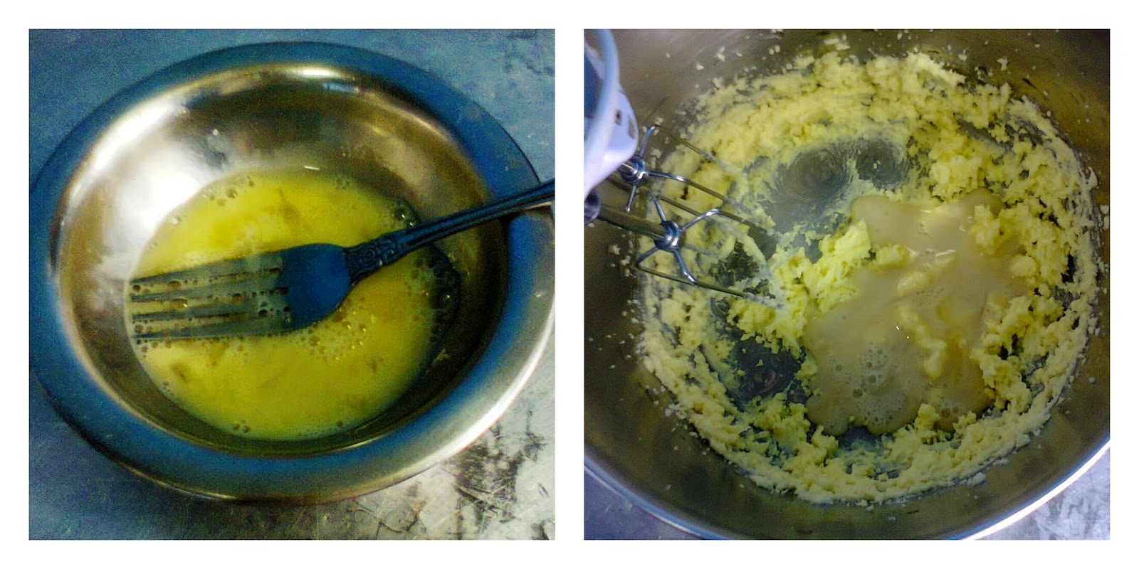 5. Beat the egg in a small bowl, then add into the creamed mixture and beat for 1 minute.