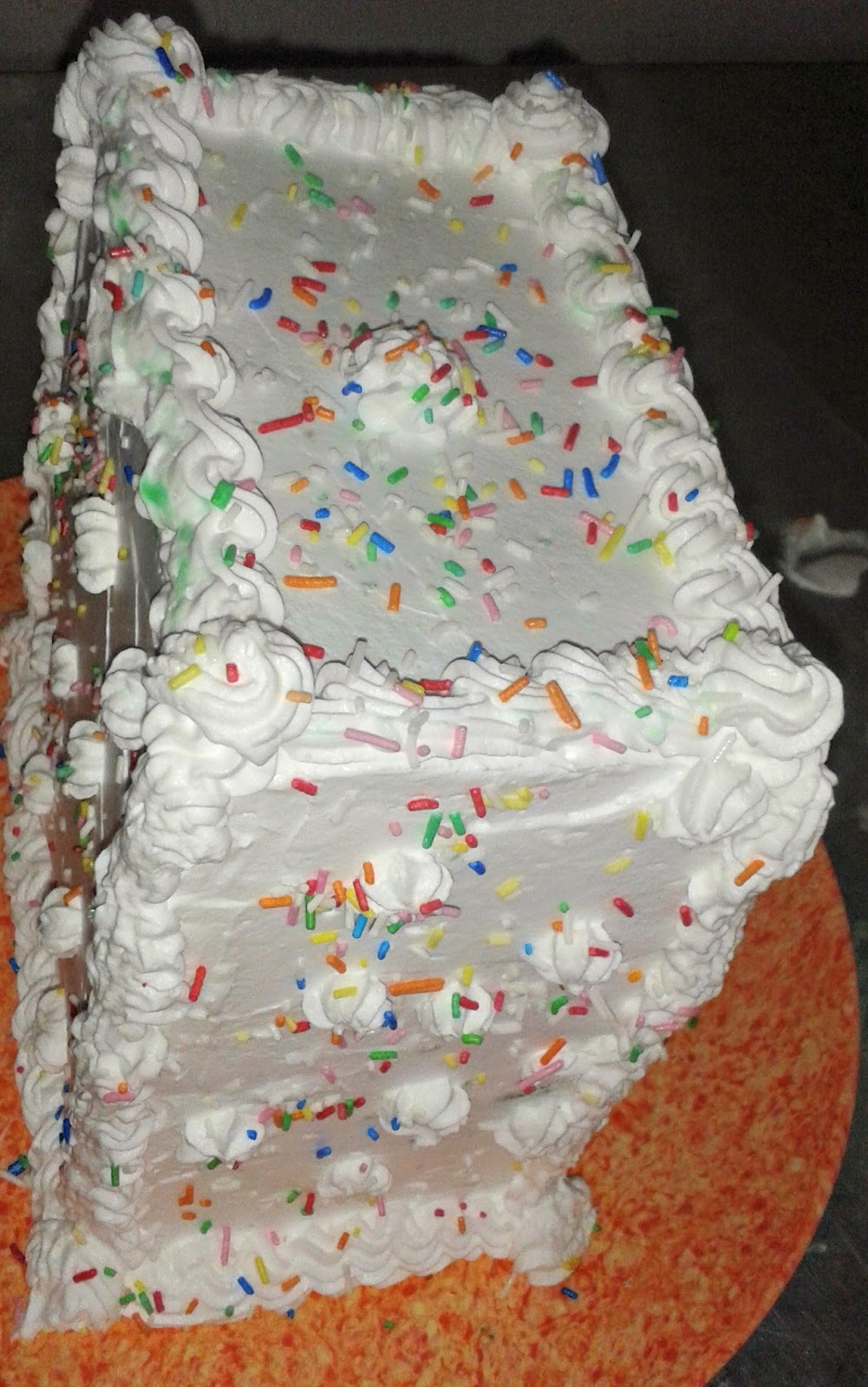 9. Frost the rest of the cake and decorate it as you like; I put some sugar sprinkles on mine for a colorful look. You’re cake is ready to eat!