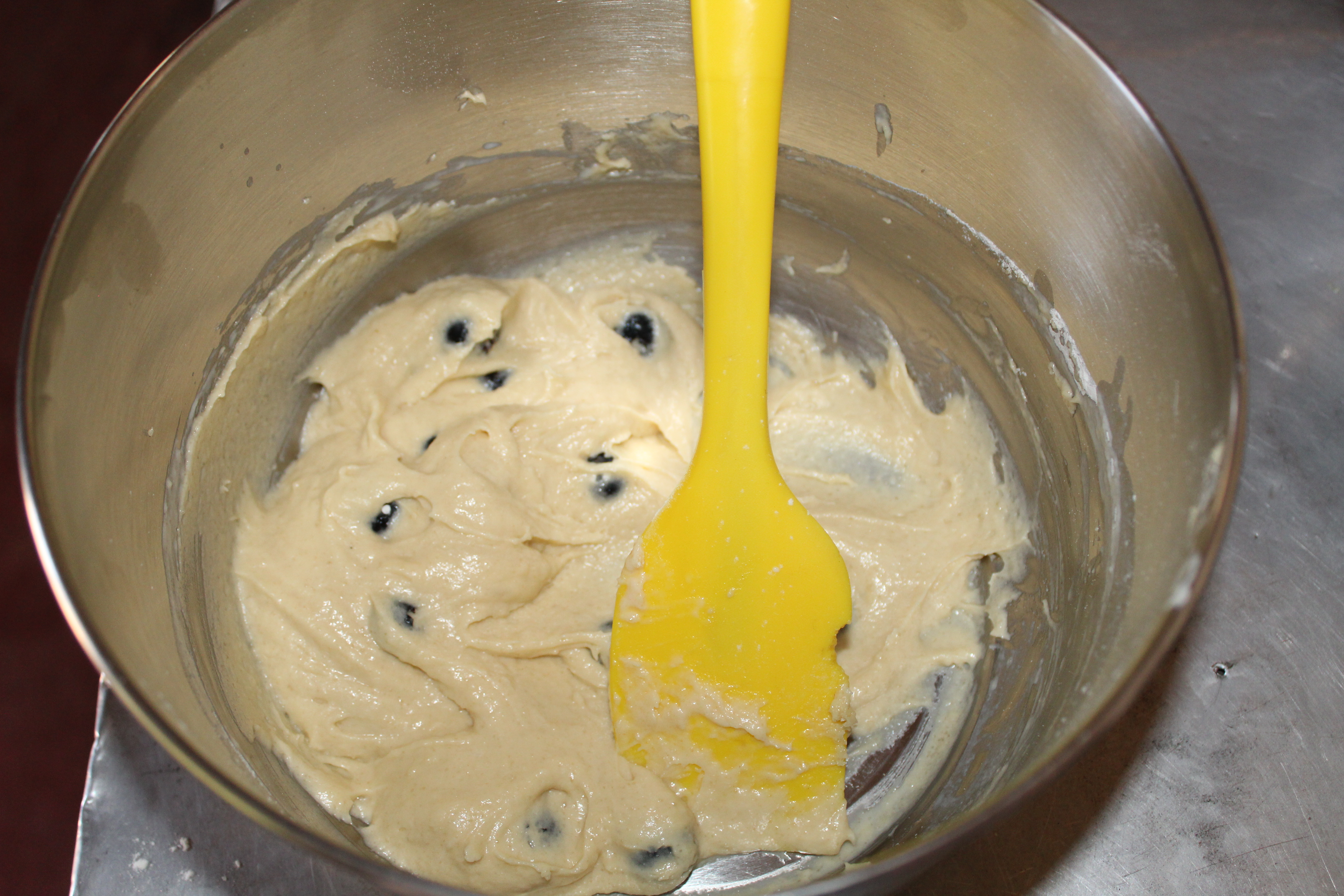 - Pour in the blueberries and fold them in with a spatula briefly and gently to incorporate. Use a spoon or an ice-cream scoop to pour batter into the cupcake liners.