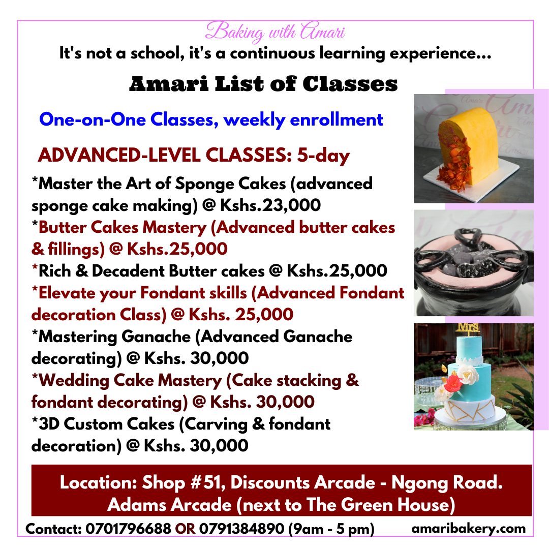 Previous Image Next Image 2024 – List of advanced level classes_Baking with Amari Share this: Share on Facebook (Opens in new window) Facebook Share on Pinterest (Opens in new window) Pinterest Share on WhatsApp (Opens in new window) WhatsApp Share on Telegram (Opens in new window) Telegram Share on X (Opens in new window) X Share on LinkedIn (Opens in new window) LinkedIn Like Loading...