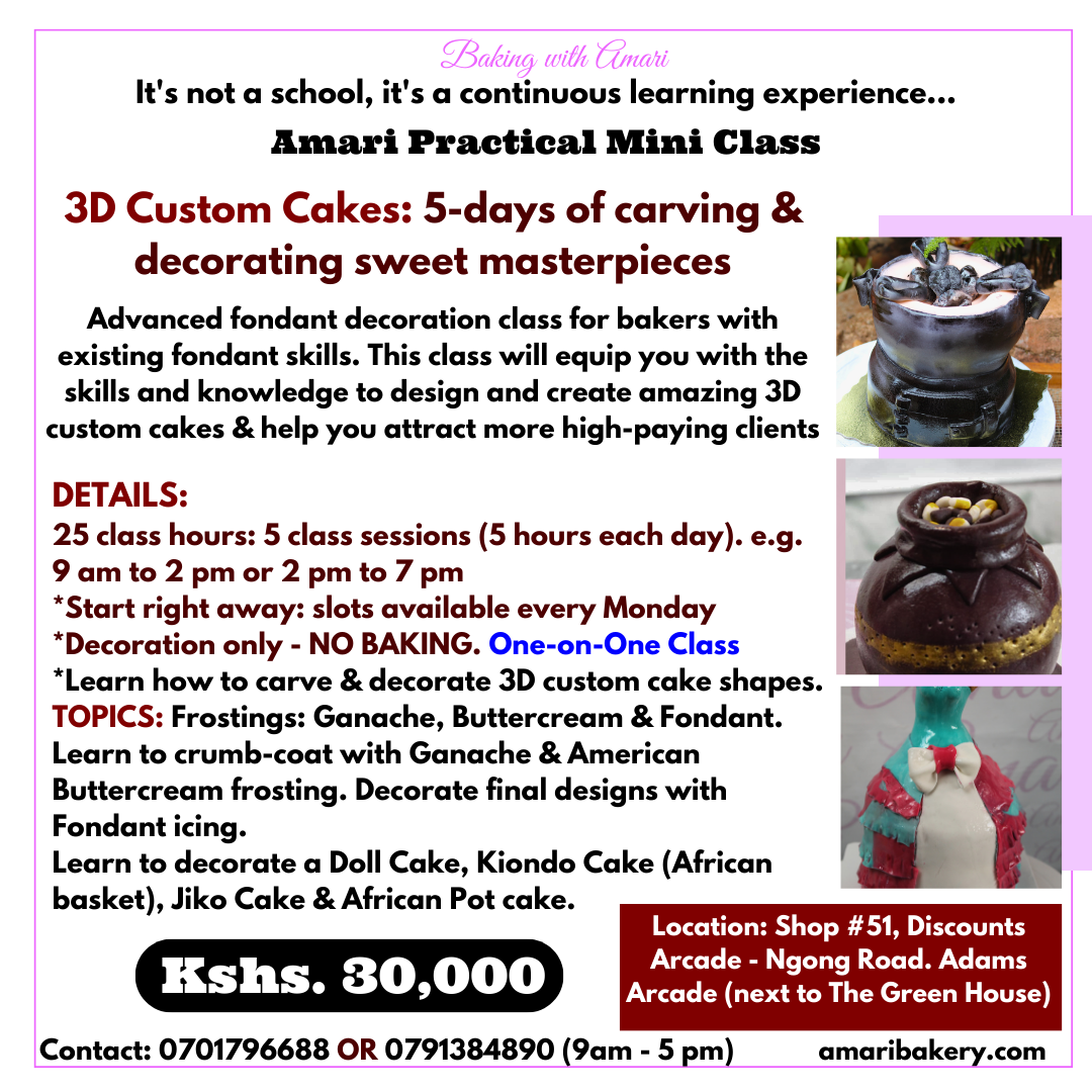 Previous Image Next Image 3D Custom cakes_Advanced fondant deco class-Baking with Amari Poster 2023 Share this: Share on Facebook (Opens in new window) Facebook Share on Pinterest (Opens in new window) Pinterest Share on WhatsApp (Opens in new window) WhatsApp Share on Telegram (Opens in new window) Telegram Share on X (Opens in new window) X Share on LinkedIn (Opens in new window) LinkedIn Like Loading...