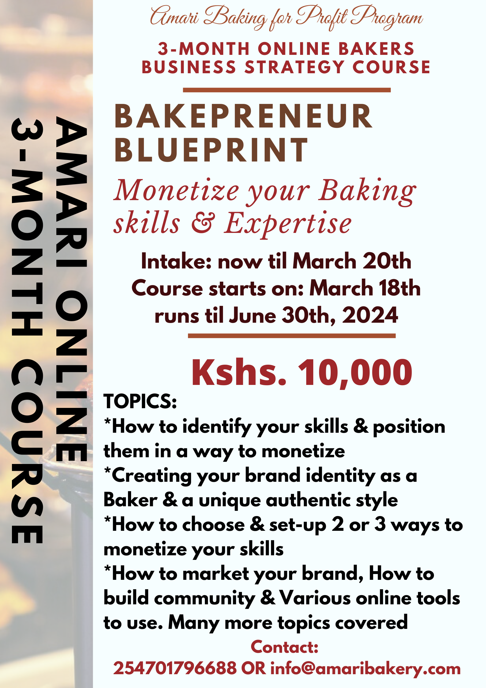 Previous Image Next Image bakepreneur-blueprint-poster_amari-bfp-3-month-online-course Share this: Share on Facebook (Opens in new window) Facebook Share on Pinterest (Opens in new window) Pinterest Share on WhatsApp (Opens in new window) WhatsApp Share on Telegram (Opens in new window) Telegram Share on X (Opens in new window) X Share on LinkedIn (Opens in new window) LinkedIn Like Loading...