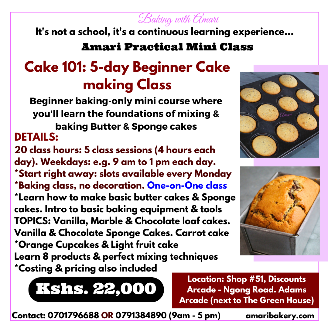 Previous Image Next Image Cake 101 Beginner cake making Amari Mini class Poster 2023 Share this: Share on Facebook (Opens in new window) Facebook Share on Pinterest (Opens in new window) Pinterest Share on WhatsApp (Opens in new window) WhatsApp Share on Telegram (Opens in new window) Telegram Share on X (Opens in new window) X Share on LinkedIn (Opens in new window) LinkedIn Like Loading...