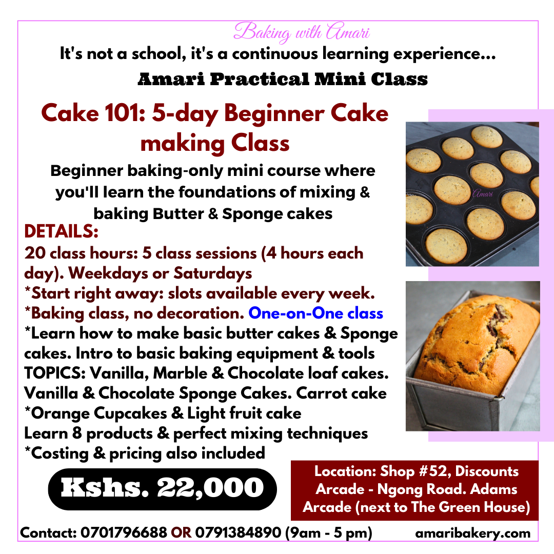 Previous Image Next Image Cake 101 Beginner cake making Amari Mini class Poster 2023 Share this: Share on Facebook (Opens in new window) Facebook Share on Pinterest (Opens in new window) Pinterest Share on WhatsApp (Opens in new window) WhatsApp Share on Telegram (Opens in new window) Telegram Share on X (Opens in new window) X Share on LinkedIn (Opens in new window) LinkedIn Like Loading...