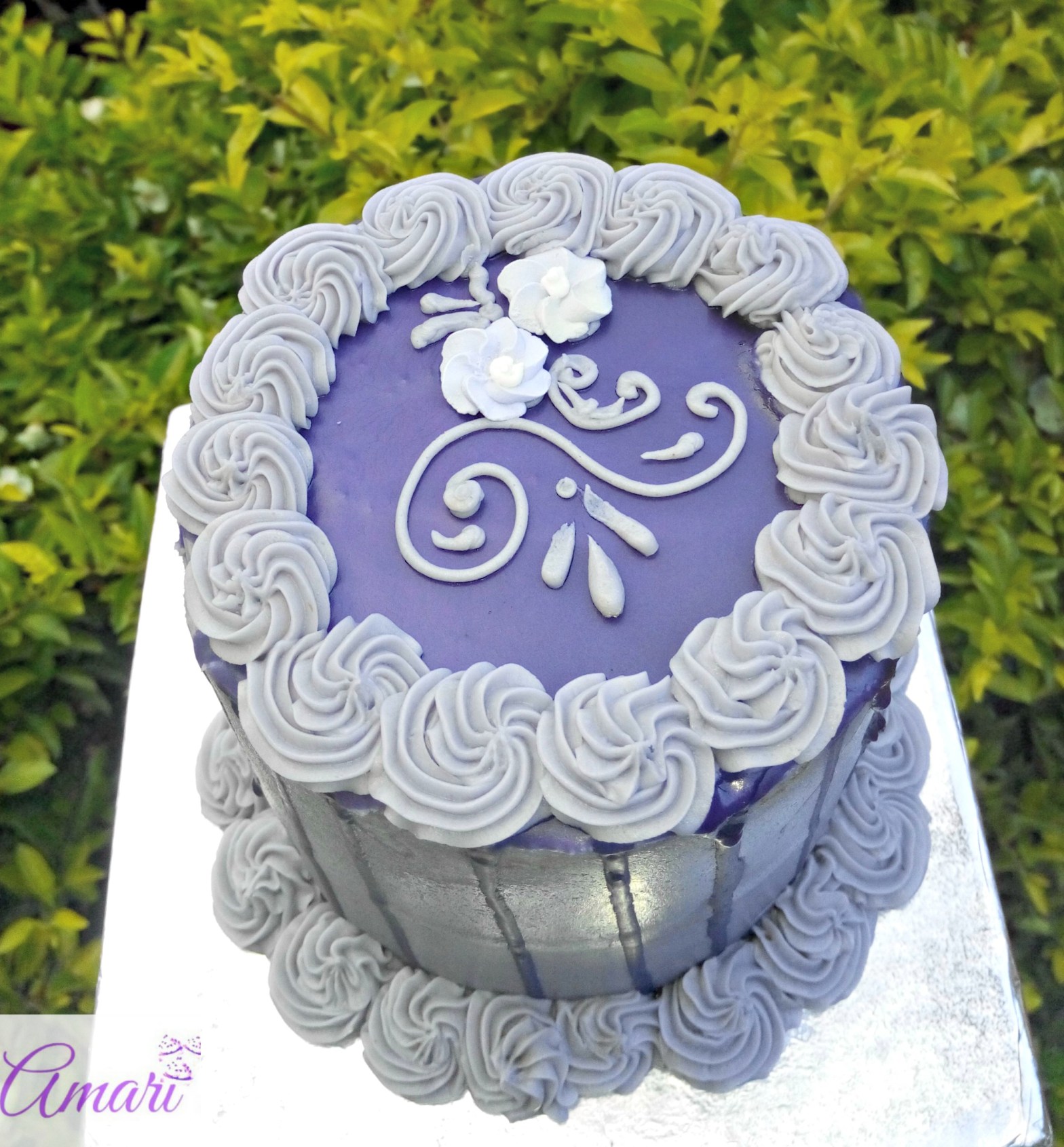 Vanilla Tall Cake with Buttercream Frosting and Purple Glaze