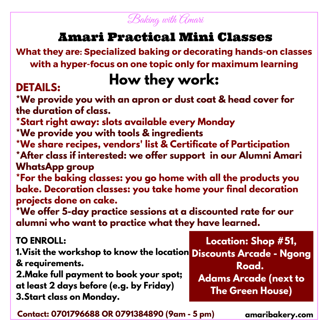 Previous Image Next Image How Amari mini classes work Poster-NEW Share this: Share on Facebook (Opens in new window) Facebook Share on Pinterest (Opens in new window) Pinterest Share on WhatsApp (Opens in new window) WhatsApp Share on Telegram (Opens in new window) Telegram Share on X (Opens in new window) X Share on LinkedIn (Opens in new window) LinkedIn Like Loading...