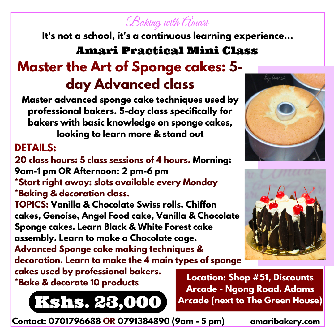Previous Image Next Image Master the art of Sponge cakes-Advanced class_Baking with Amari poster Share this: Share on Facebook (Opens in new window) Facebook Share on Pinterest (Opens in new window) Pinterest Share on WhatsApp (Opens in new window) WhatsApp Share on Telegram (Opens in new window) Telegram Share on X (Opens in new window) X Share on LinkedIn (Opens in new window) LinkedIn Like Loading...